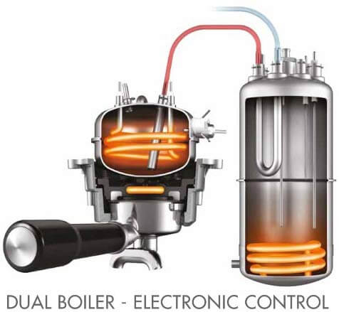 • دارای دو بویلر مستقل برای اسپرسوی دقیق و بخار هم‌زمان.